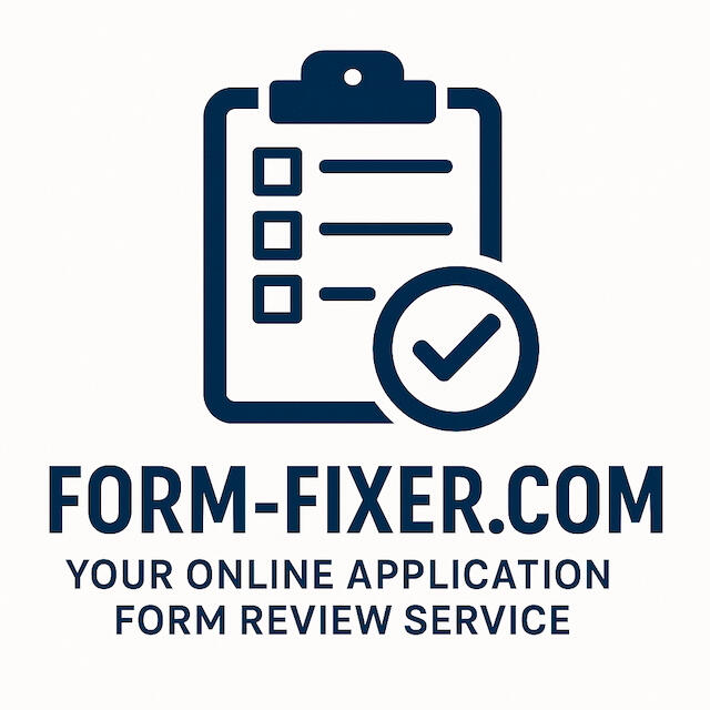 Form-Fixer reviews documents to help you identify possible errors or omissions.We don’t submit applications on your behalf and can’t guarantee acceptance by any agency.All feedback is based on your provided information.Prices: £9 Standard (24 h) | £15 Express (4 h). Payments are non-refundable once a review is complete.For support: [email protected]Last updated: March 2025